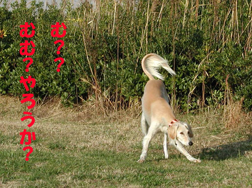 私が遊ぼうと言っても・・・・みんなが来るほうをじーっと見ています。