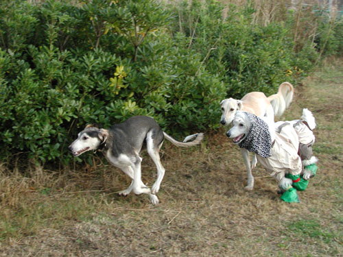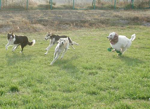 左から・・・・・・将来のリベラ君・・・・・狼サイトハウンドさん・・・・・・・・・サルーキーさん